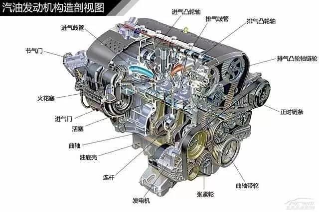 一般说到汽油发动机,我们都会说它是由2大机构5大系统构成:1、曲柄连杆机构,2、配气机构,3燃料供给系统,4、润滑系统,5、冷却系统,6、启动系统、7点火系统(柴油发动机没有点火系统)等组成。